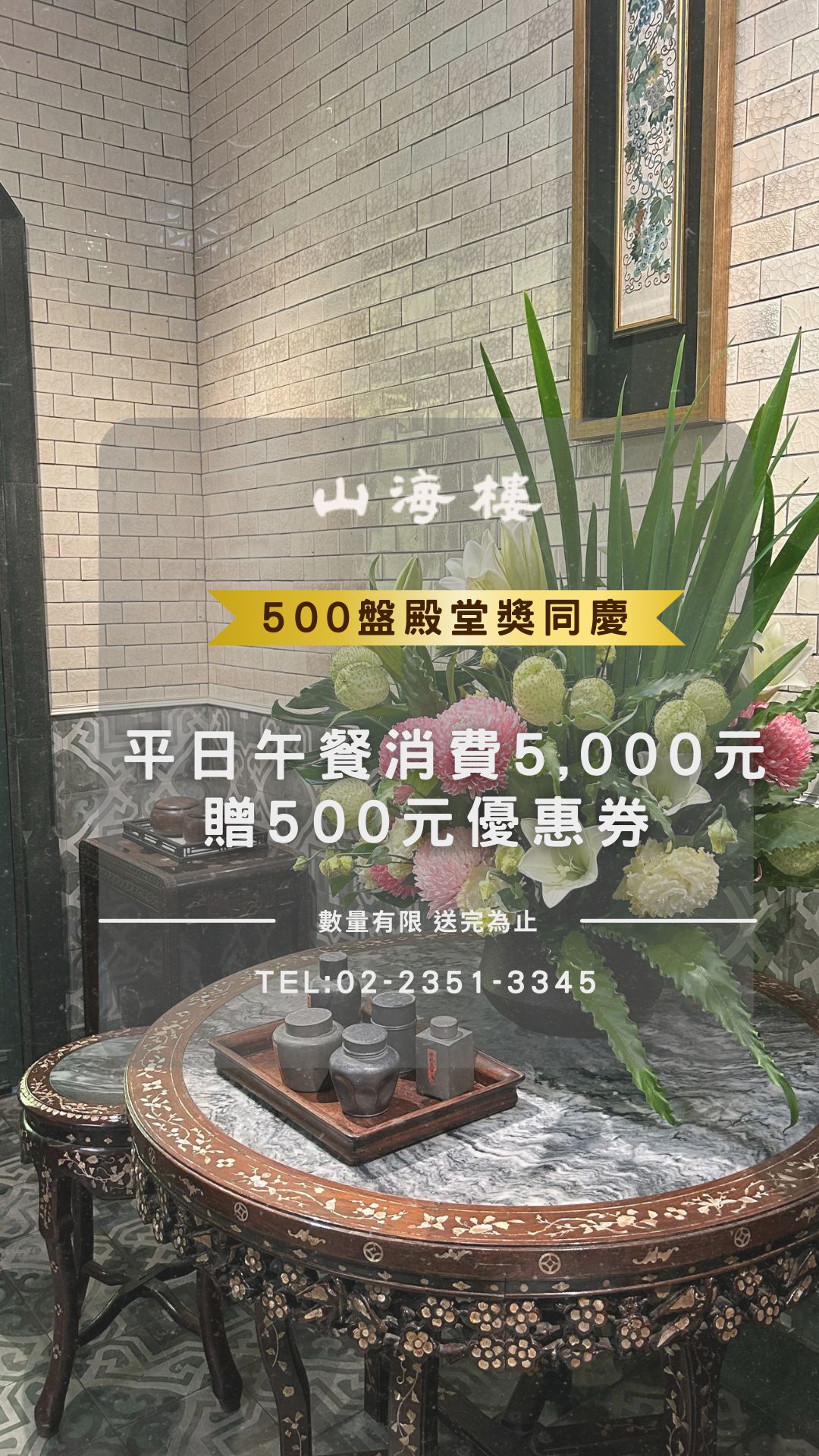 山海樓榮獲《500盤》殿堂獎|滿5,000送500